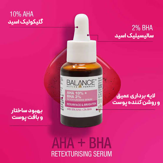 ویژگیهای اصلی سرم لایه بردار AHA10% و 2%BHA بالانس :