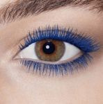 رنگی آبی کاربنی بسیار شیک با ریمل رنگ آبی حجم دهنده مدل Maybelline NewYork