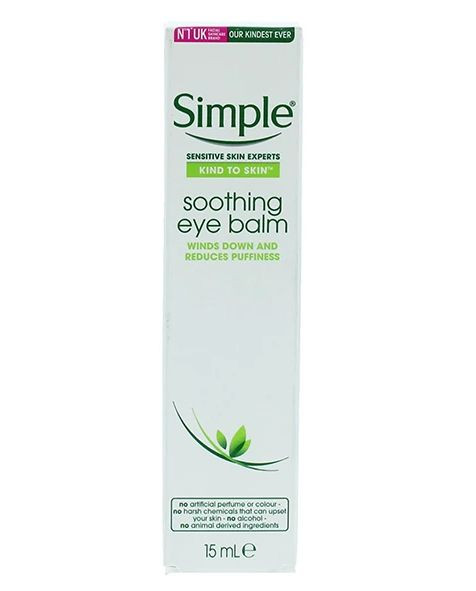 محصولی از برند Simple میباشد. این بالم دور چشم به خوبی پف و تیرگی ناحیه دور چشم را کاهش داده و باعث آرامش و تسکین دور چشم میشود. در ترکیبات این دور چشم پرو ویتامین B5، ویتامین E، روغن جوجوبا و بیزابولول به کار رفته است. تمامی ترکیبات موجود در دور چشم سیمپل با دقت انتخاب شدهاند و دوستدار پوست میباشند. فرمولاسیون این محصول بسیار سبک و زود جذب میباشد.
