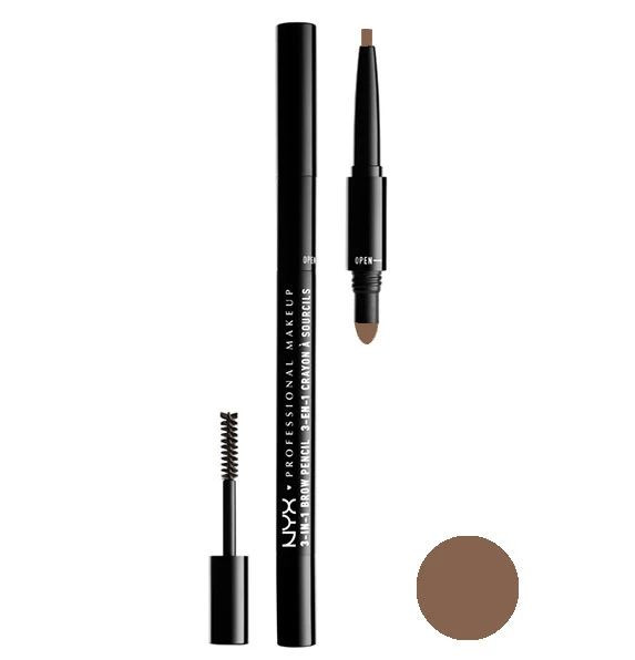 سه کاره مداد، پودر و ریمل ابرو نیکسSOFT BROWN رنگ NYX PROFESSIONAL COSMETIC 3-IN-1 BROW PENCI