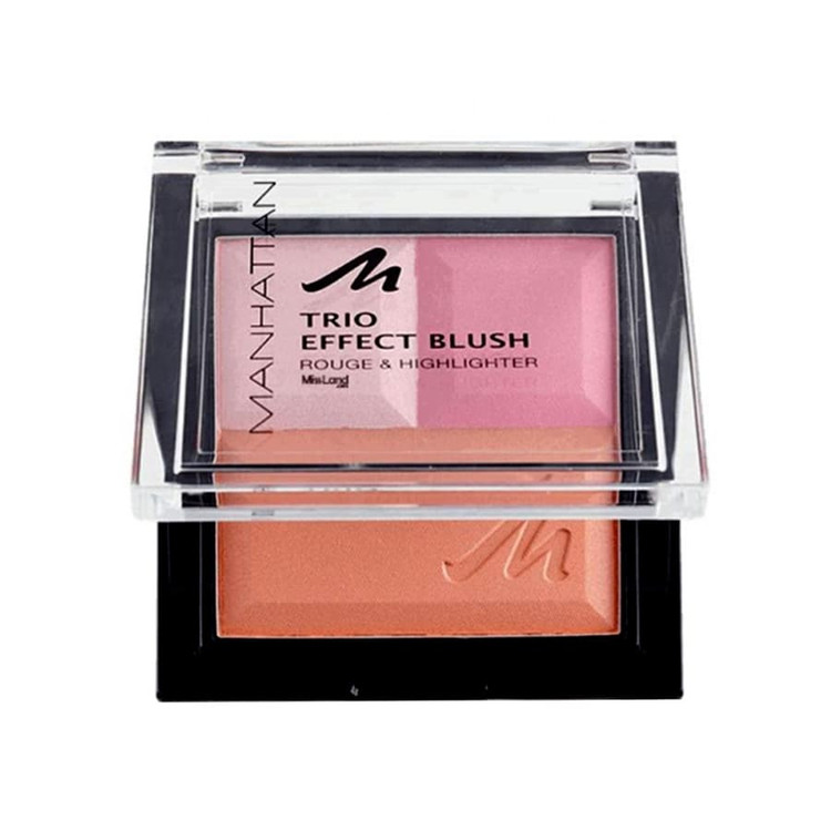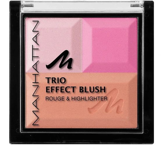 کیت سه رنگ Trio Effect Blush منهتن شامل دو رنگ رژ گونه و یک رنگ هایلایتر است. بافت رنگ های این کیت، پودر فشرده و ابریشمی است که ماندگاری بالایی دارد. پیگمنت های آن ها نیز بسیار غنی بوده و در هر بار مصرف مقدار کمی استفاده خواهد شد. از رنگ های این کیت میتوانید به تنهایی و یا در ترکیب با یکدیگر استفاده کرده و رنگ های جذاب جدیدی را ایجاد کنید