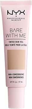بی بی کرم نیکس | NYX Bare With Me Tinted Skin Veil یک کرم پودر آرایش حرفه ای از برند نیکس که رنگ صورت شما را یکدست می کند و عیوب جزئی را پنهان می کند. این کرم که در 12 رنگ موجود است، پوششی سبک و روکش یکنواخت و طبیعی ارائه می دهد و تا 8 ساعت ماندگاری بی عیب و نقص دارد و پوست شما را آبرسانی میکند. این بی بی کرم پوششی طبیعی، روکش زیبا به پوست شما میدهد. به شما احساس سبکی فوق العاده و بدون رگه ارائه می دهد.