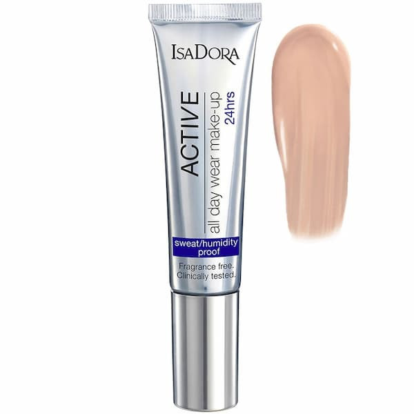 کرم پودر ایزادورا مدل 24 ساعته Active حجم ۳۵ میل، فاقد چربی بوده و ضد آب و ضد تعریق است. این کرم پودر با بافت سبکی که دارد به راحتی روی پوست قرار میگیرد و ظاهری یکدست و طبیعی به آرایش شما میدهد. همچنین وجود گلیسیرین در ترکیبات آن باعث ایجاد یک لایه محافظ بر روی پوست می شود که از هدر رفتن رطوبت پوست جلوگیری نموده و پوست را نرم و لطیف نگه می دارد. به دلیل داشتن فرمولاسیون بدون چربی این محصول برای ورزشکاران و افرادی که کرم پودر با ماندگاری میخواهند مناسب است.
