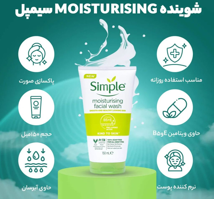 خصوصیات ژل شستشوی سیمپل Kind to Skin Moisturising Facial Wash 150ml Simple