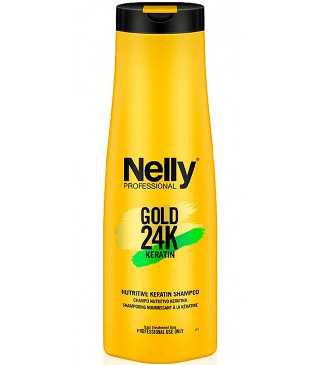 شامپو کراتین ترمیم کننده نلی پروفشنال گلد Nelly Gold 24K Keratin حاوی ذرات طلای 24 عیار، روغن آرگان و کراتین بوده و ترمیم کننده قوی موهای خشک و آسیب دیده می باشد. شامپو کراتین نلی علاوه بر ترمیم کوتیکول مو، سطح خارجی مو را تقویت کرده و استحکام و انعطاف پذیری مو را افزایش می دهد.