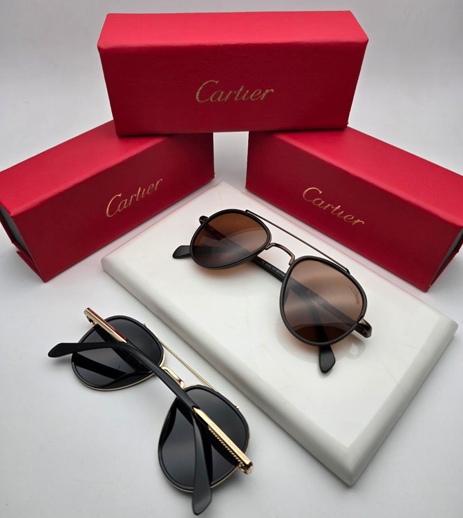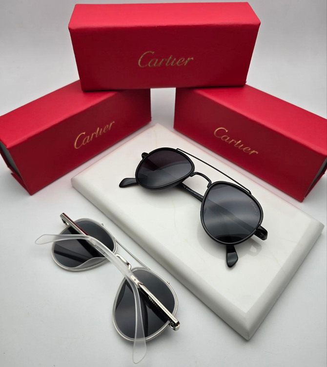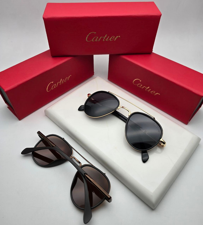 عینک آفتابی زنانه و مردانه کارتیربا بدنه فلزی رنگ مشکی و محافظت UV400 و فیلتر پولاریزه