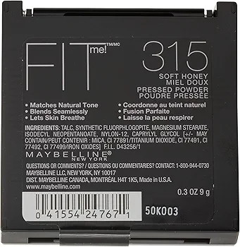 این محصول با بافت نرم و کرمی شکل خود برای انواع پوستها حتی پوست های حساس مناسب است. که به تمام قسمتهای پوست پوشش کامل و رنگی طبیعی را بدهد. پنکیک میبلین مدل FIT ME شماره 315 و تن رنگ تیره به بازار جهانی معرفی شده است. که حاوی ویتامین E و رنگدانه های طبیعی است که با استفاده از این محصول پوستی صاف خواهید داشت.