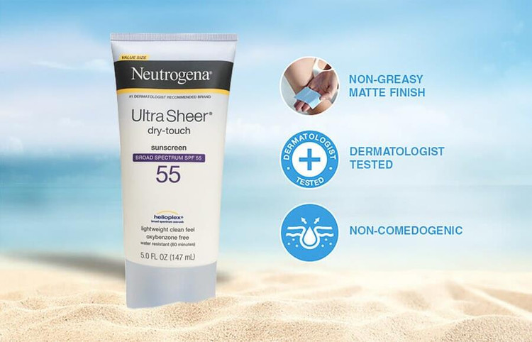 ضد آفتاب نیتروژنا neutrogena ULTRA SHEER SPF 55 ضد آفتابی با اثرات بسیار موثر است. فرموله شده با Helioplex ، محافظت مؤثر در طیف گسترده در برابر پیری UVA و سوزاندن اشعه UVB انجام می دهد. همراه با فناوری Dry-Touch برای ارائه یک پوست فوق العاده سبک و غیر براق را فراهم می کند. مات است و باعث می شود بتوان از آن برای زیر آرایش استفاده کرد.این فرمول سبک به سرعت جذب می شود و رایحه ای سبک و تازه دارد. ساخته شده غیر comedogenic ، بنابراین باعث مسدود شدن منافذ نمی شود و باعث ایجاد آکنه نمی شود. 80 دقیقه مقاومت در برابر آب و عرق را فراهم می کند. این لوسیون در یک بسته بندی 88 میلی لیتری عرضه می شود و آن را به عنوان یک سایز مناسب برای مسافرت ایده آل می کند