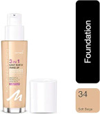 کرم پودر 3 در 1 حجم دارای 30 میل منهتن SPF20 شماره 34 Manhattan 3 in 1 Easy Match Foundation برای پوست های نرمال تا خشک طراحی شده است.این کرم پودر طبیعی دارد و به راحتی بر پوست صورت می نشیند و رنگ پوست را یکدست کرده و منافذ پوست را می پوشاند. این کرم پودر فرمولاسیون سبک داردو حاوی ضد آفتاب است و سه کاره است هم ضد آفتاب ،آبرسان، کرم پودر