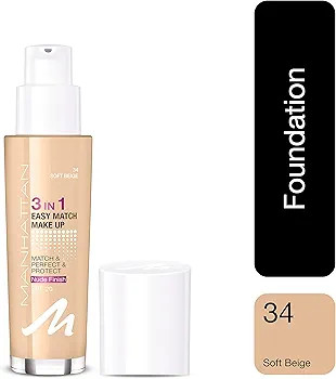 کرم پودر 3 در 1 حجم دارای 30 میل منهتن SPF20 شماره 34 Manhattan 3 in 1 Easy Match Foundationبا ظاهری صاف و براق، ظاهری کاملاً بیمنفذ به پوست خود ببخشید. این کرم پودر مایع سبک و قابل تنفس تا ۱۶ ساعت، پوششی کامل و بدون ایجاد پوسته پوسته شدن ارائه میدهد که در تمام طول روز پوست را مرطوب نگه میدارد.